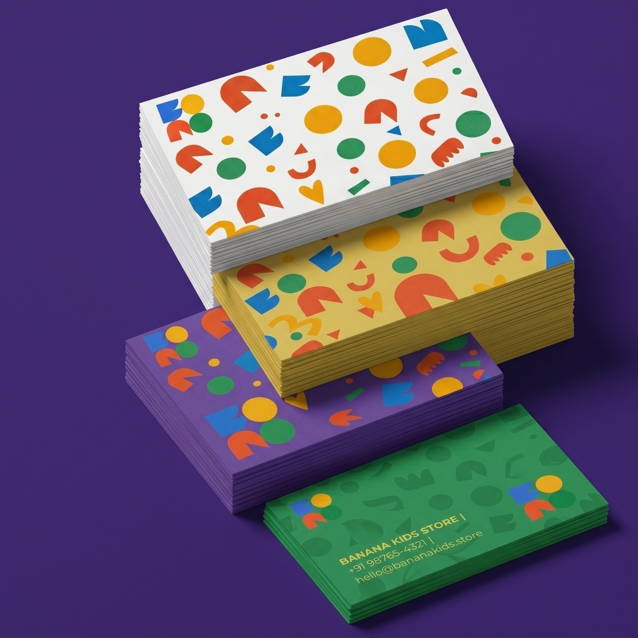 Banana Kids Toy Store is a vibrant world designed to spark pure imagination. Built on a foundation of play-based learning, the brand offers curated toys that are as educational as they are fun. Its identity celebrates the joyful chaos of childhood through a bold, primary-colored palette of electric blue, sunny yellow, and grassy green. The visual language uses a geometric-abstract style, featuring a playful pattern of semi-circles, stars, and organic shapes. This "building block" aesthetic is mirrored in the logo, which feels sturdy yet full of movement.