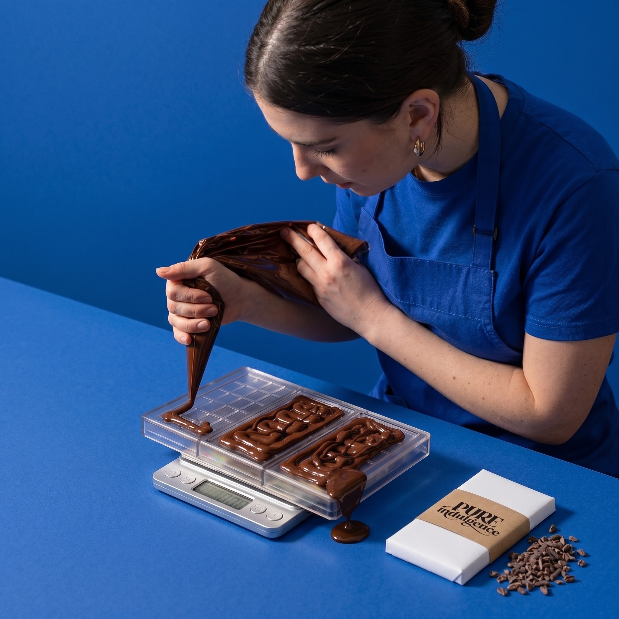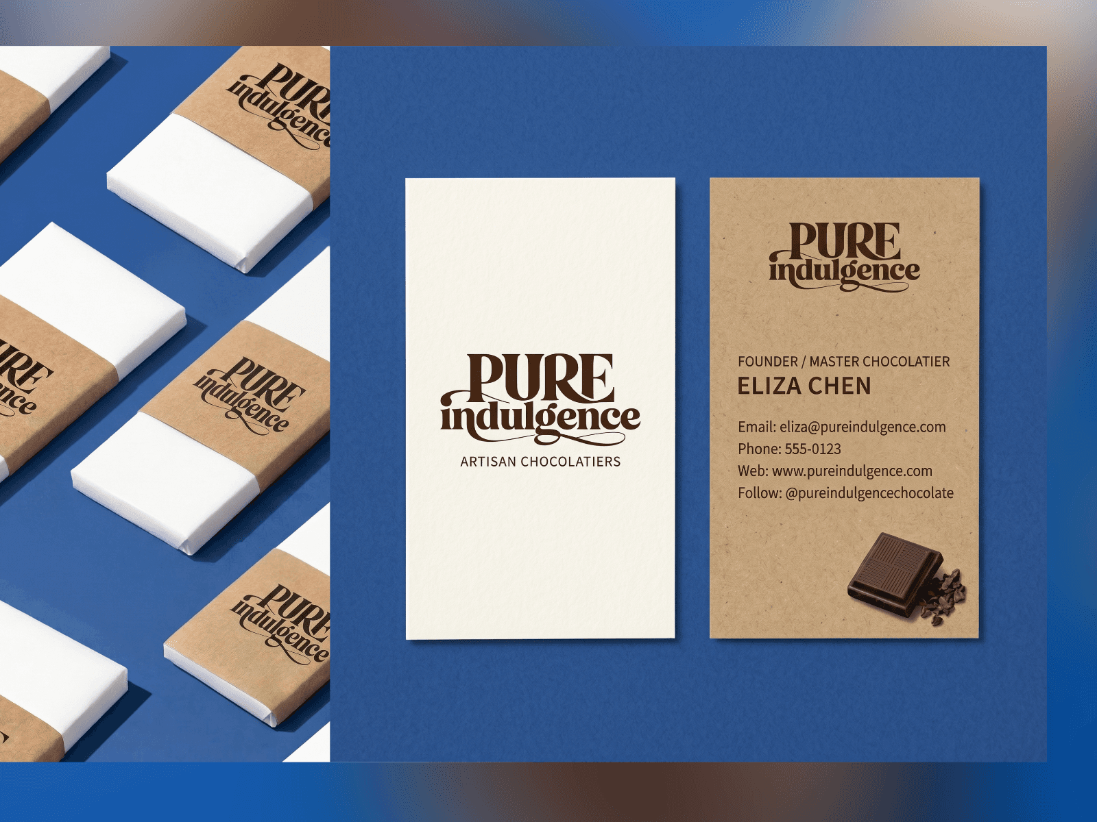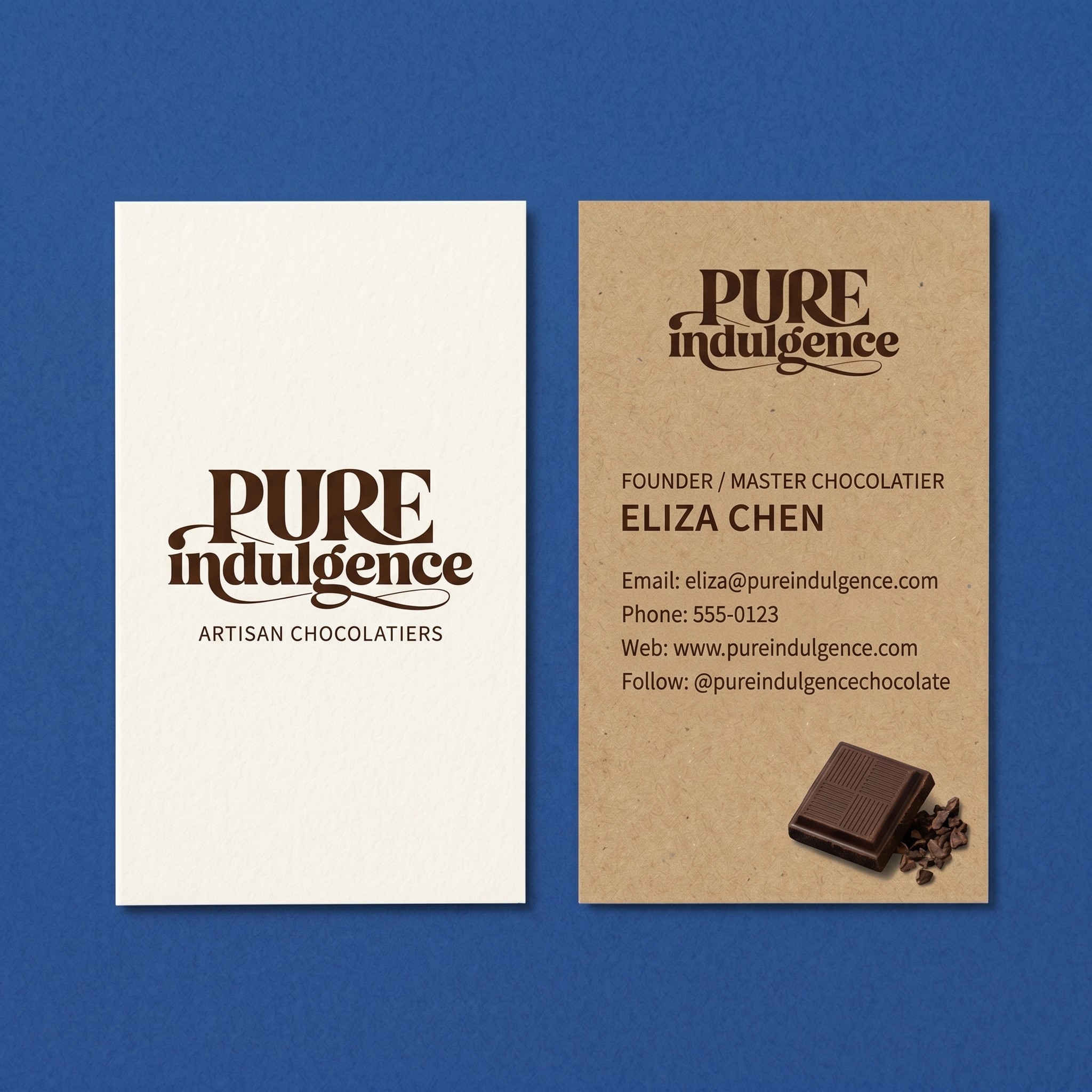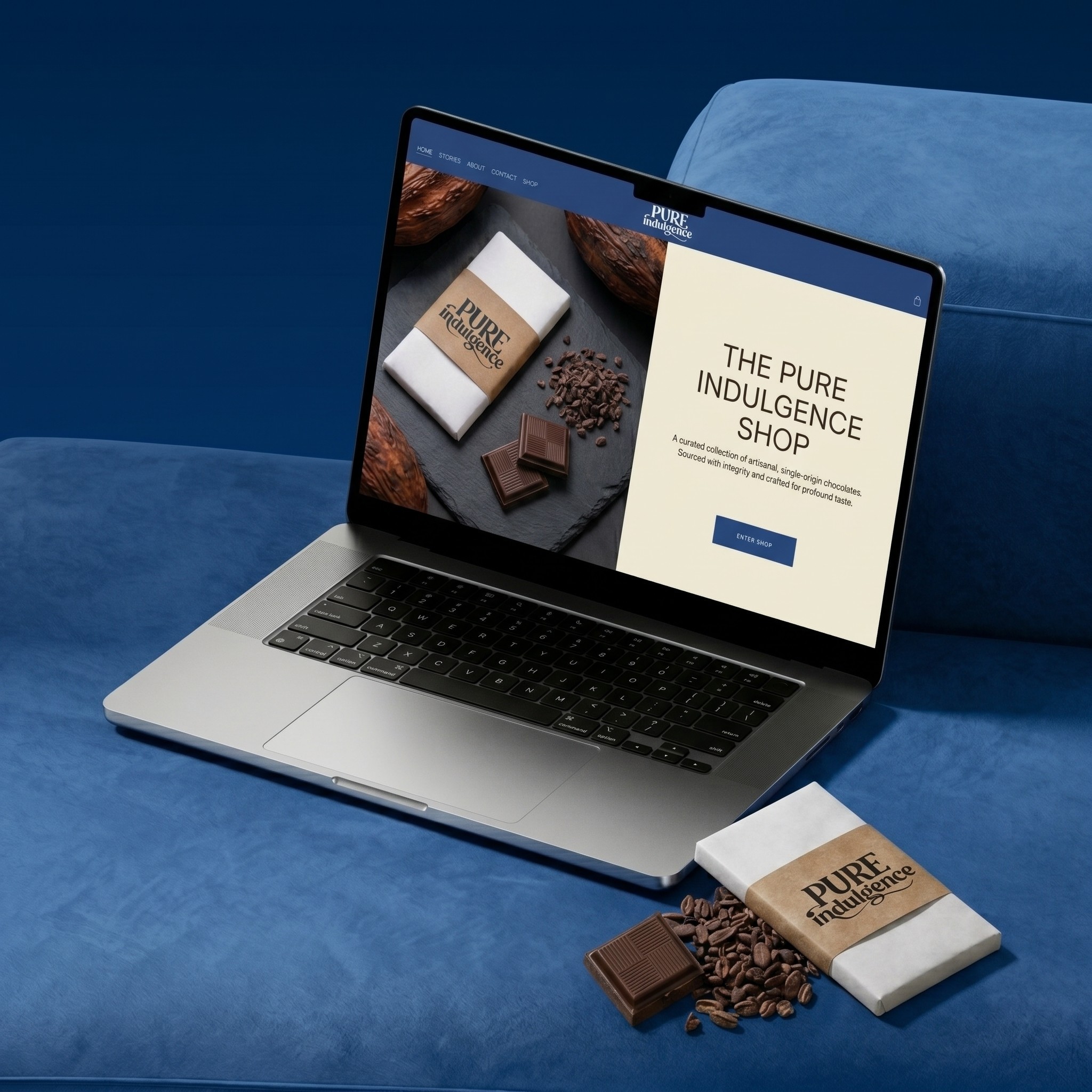 Pure Indulgence is an artisanal chocolate brand dedicated to single-origin, high-quality cacao. The goal was to create a visual identity that conveys both "luxury" and "craft," moving away from generic commercial packaging toward a more personal, curated experience. The Challenge The brand needed to appeal to sophisticated chocolate enthusiasts who value the story behind the product. The visual language had to feel premium enough for gifting while maintaining the warmth of a small-batch, handmade product.